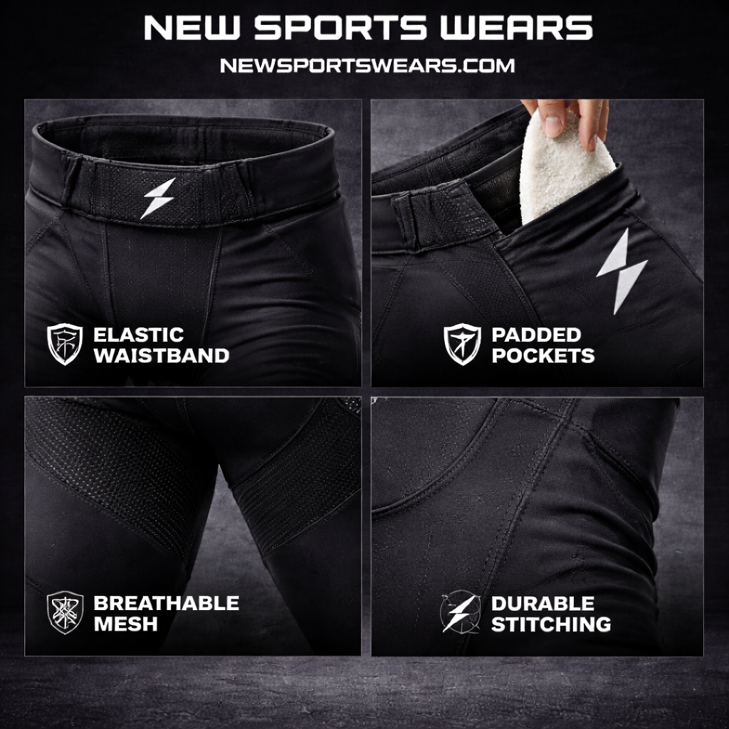 The lightweight breathable compression fabric ensures superior comfort while allowing unrestricted movement. The elastic waistband with adjustable drawstring provides a secure fit that stays in place throughout the game.