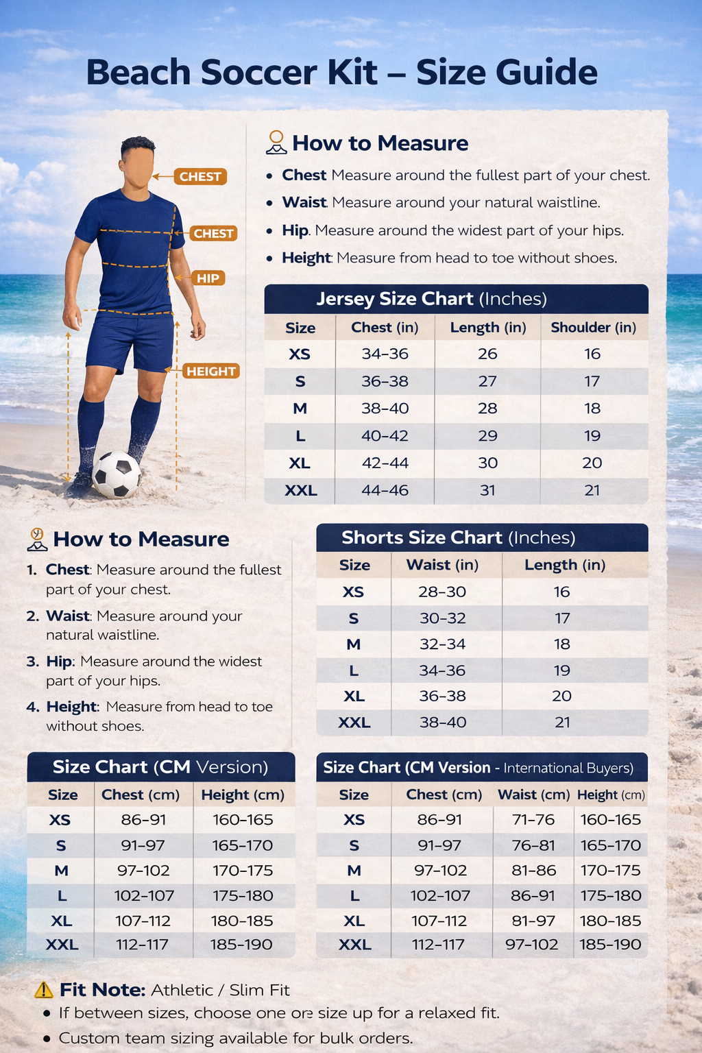 📏 Beach Soccer Kit – Size Guide