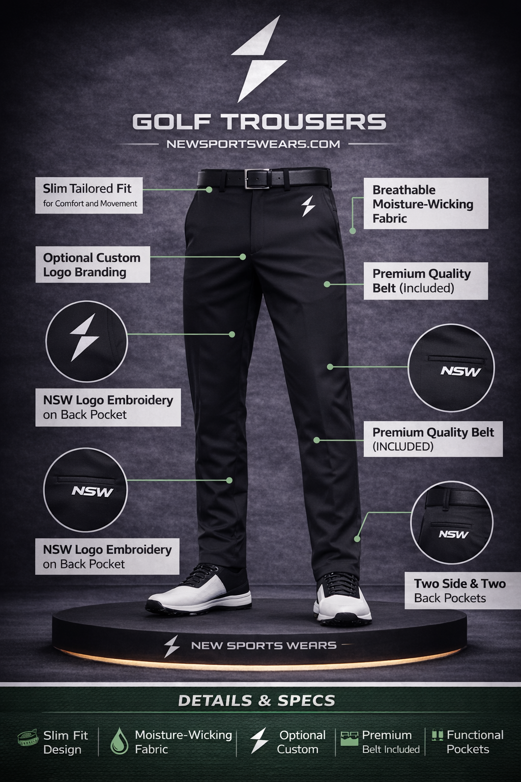 New Sports Wears is a professional golf trousers manufacturer supplying custom golf apparel worldwide with competitive bulk pricing and premium finishing standards.