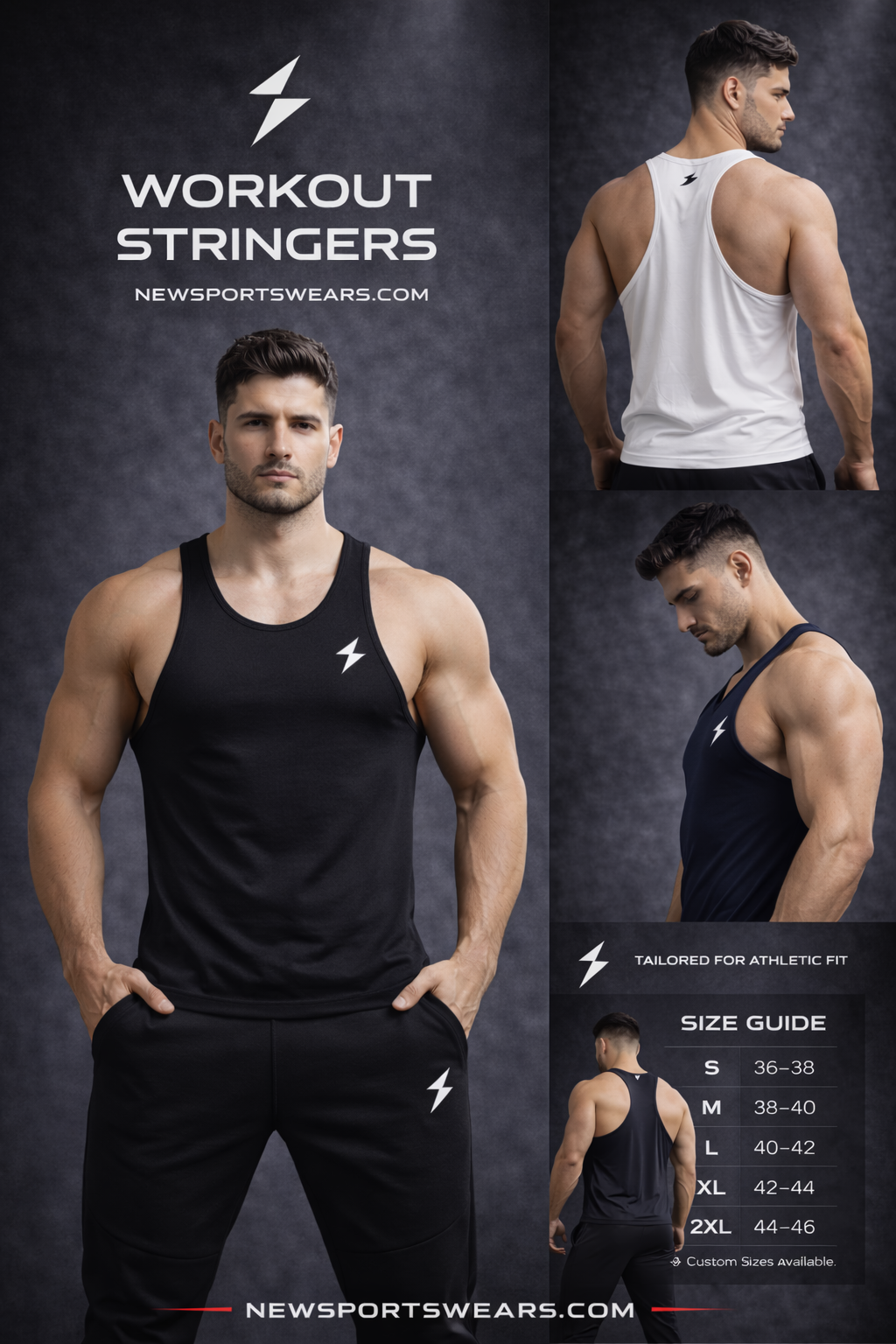 Train with confidence in our workout stringers for men. Designed with an athletic cut and breathable fabric to enhance movement and muscle definition.